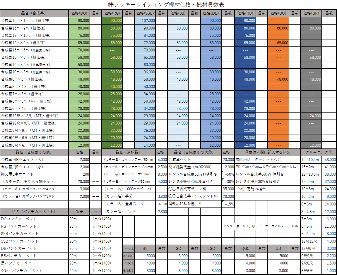 合成幕価格表